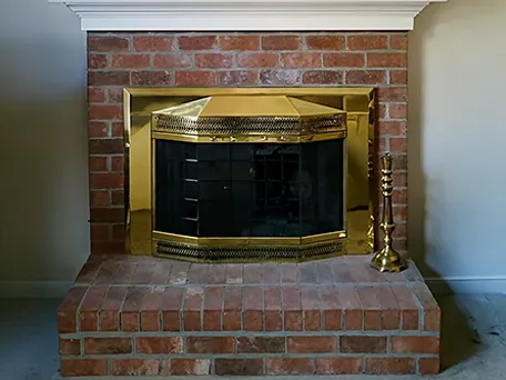 Installed decorative stone panels and new mantel shelf. Painted brass louvers.