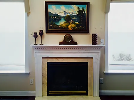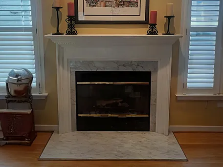Replaced existing fireplace with a Contemporary fireplace, new mantel and marble surround.