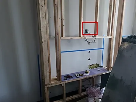 Replaced old gas fireplace. Installed half stone wall with new mantel shelf and hearth.
