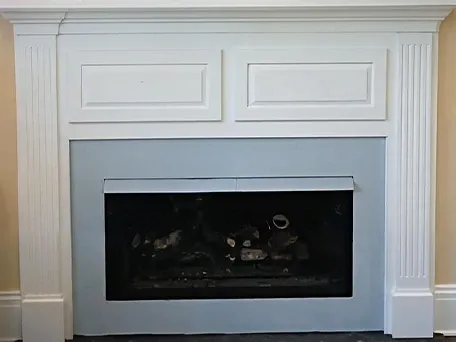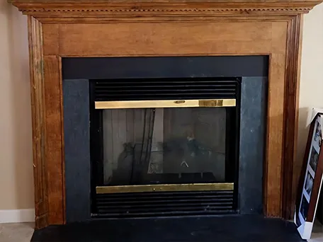 Replaced old gas fireplace. Installed decorative stone panels, new mantel and granite hearth.