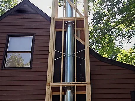 Installed wood burning fireplace, venting and raised hearth where there was none.